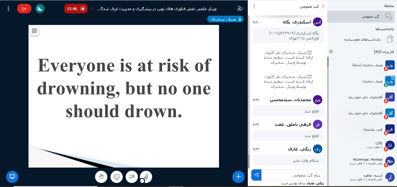 وبینار فناوری های نوین در پیشگیری و مدیریت غرق شدگی