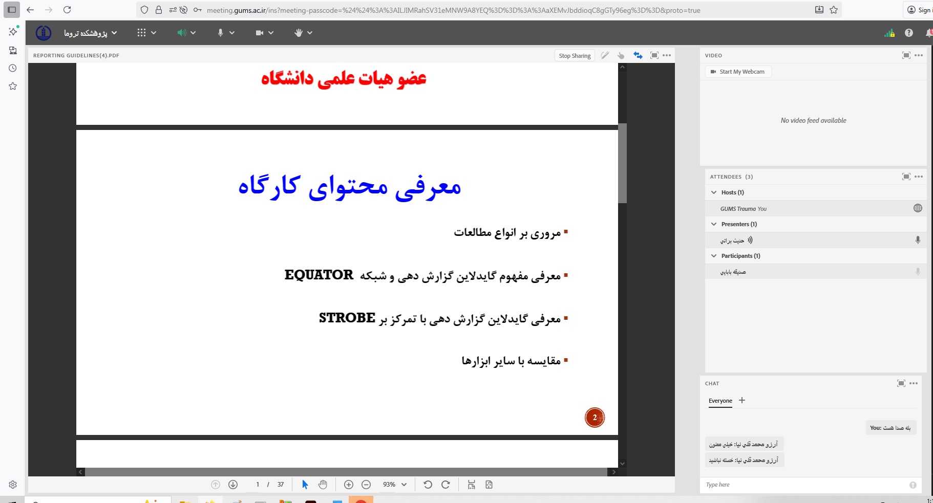جلسه جبرانی آخرین جلسه از دوره تکمیلی توسط خانم دکتر براتی با عنوان  گایدلاین های گزارش مطالعات برگزار شد و در پایان با شرکت کنندگان به بحث و تبادل نظر پرداختند.