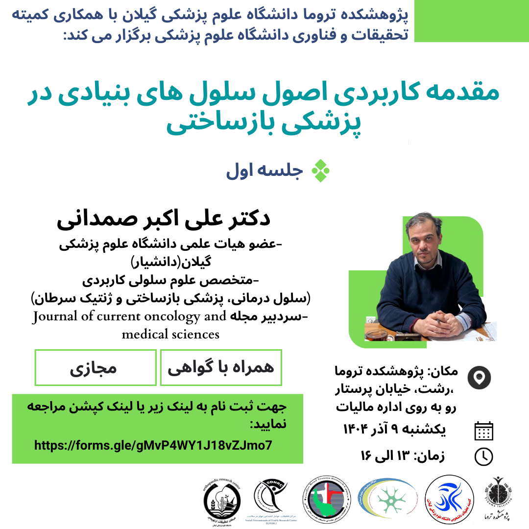 به گزارش روابط عمومی پژوهشکده تروما؛ کارگاه با عنوان مقدمه کاربردی اصول سلول های بنیادی در پزشکی بازساختی بصورت وبیناری برگزار می گردد.